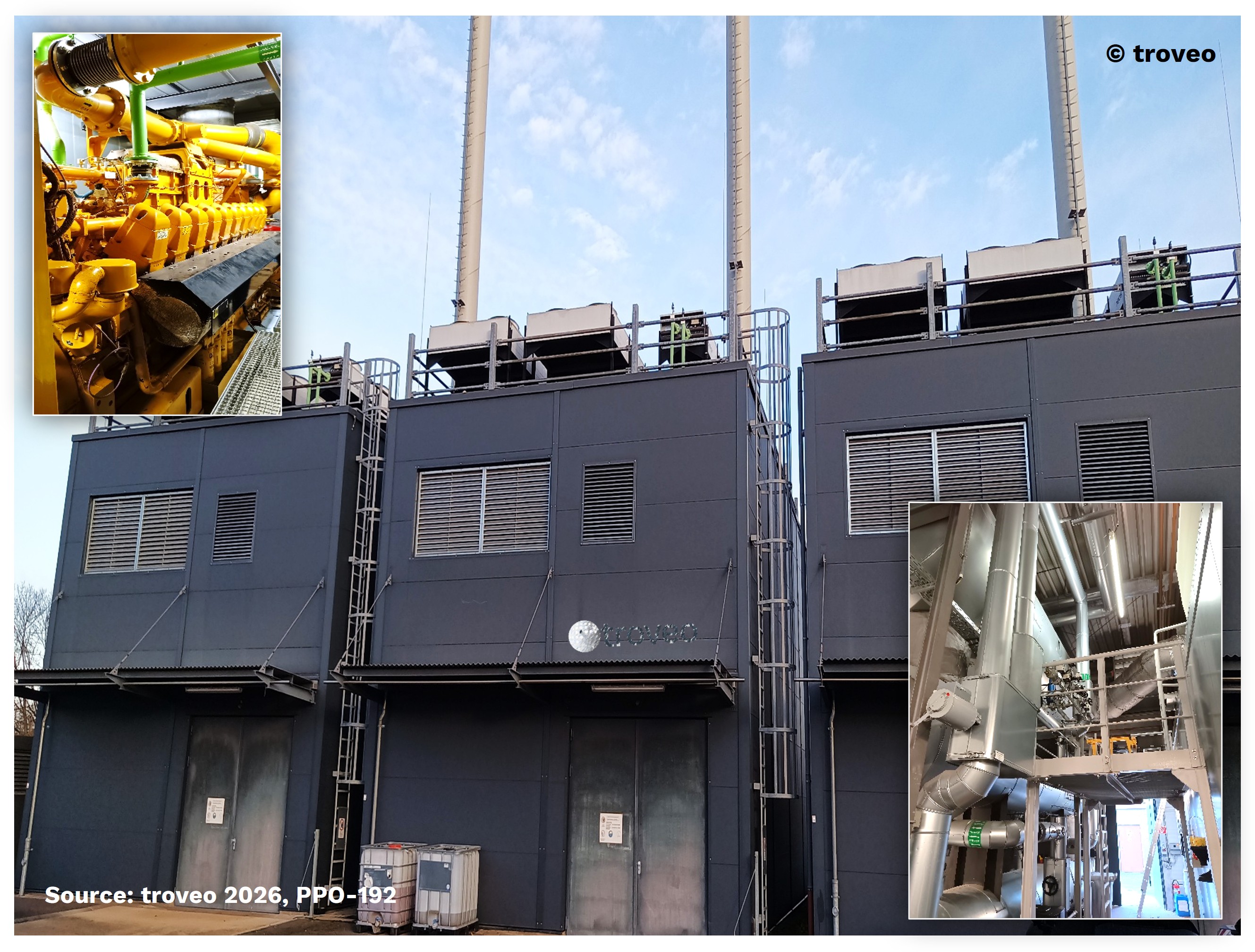 50 Hz, Gas / LNG Combustion Engine / Diesel Generator, 10 MW, 5 CHP units of 2 MW Caterpillar gen sets, each at 2,5 MVA, 10.5 kV output; built in 2011/12; from 26,000 to 54,000 OH, mothballed, excellent condition, installed / to be dismantled, PPO-192 is fully preserved by the operator; available until Autum 2026 from Western Europe; ready for immediate relocation; each unit comprises a complete small building incl. the heat extraction set; full documentation and maintenance records are available [please see broshure for more information], ...
